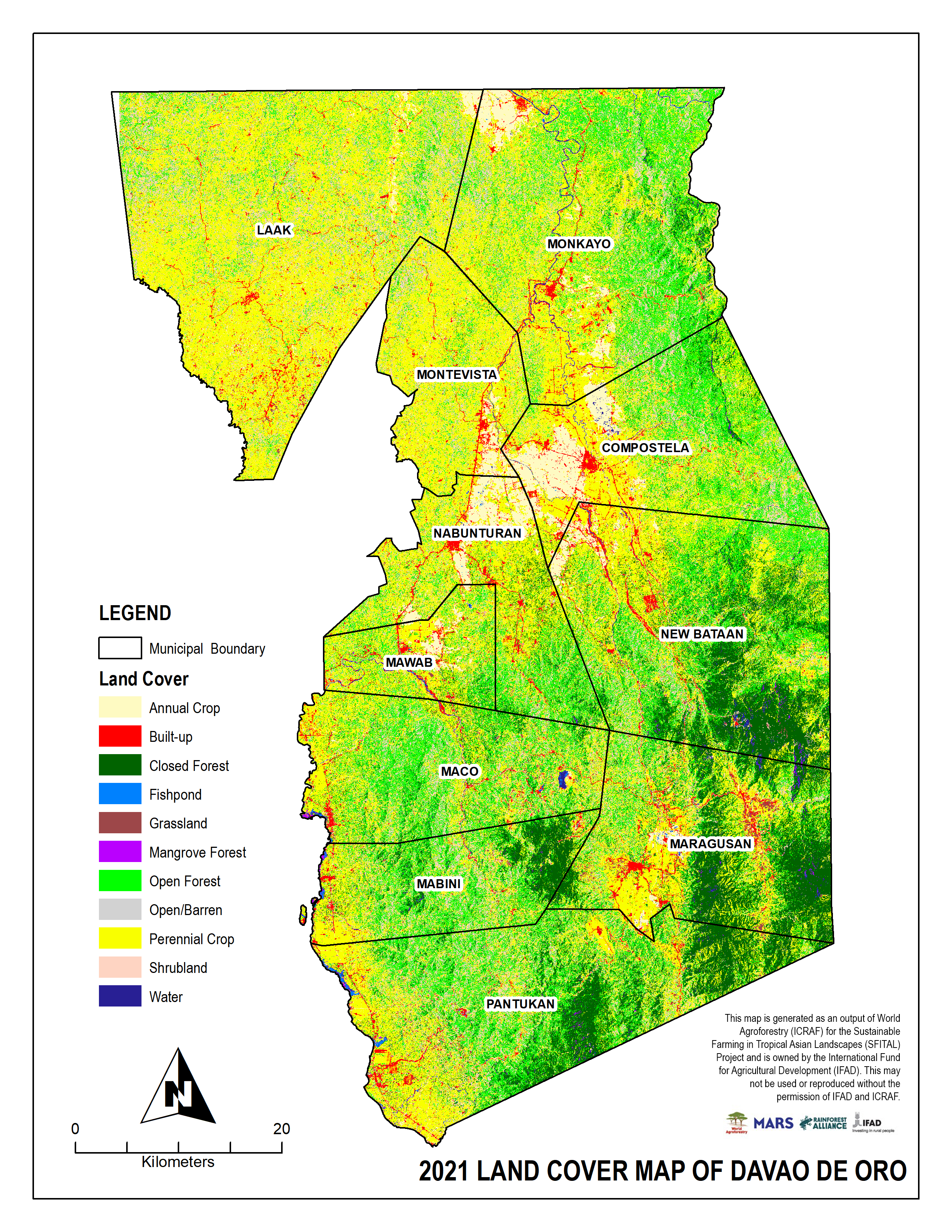 Since the most updated national land cover map from the National Mapping and Resource Information Authority (NAMRIA) is the 2015 version, the SFITAL Philippines Team had to generate an updated land cover map of the province of Davao de Oro. This was generated through remote sensing and ground truthing. This updated land cover map was also used to generate the cacao suitability maps for the province.